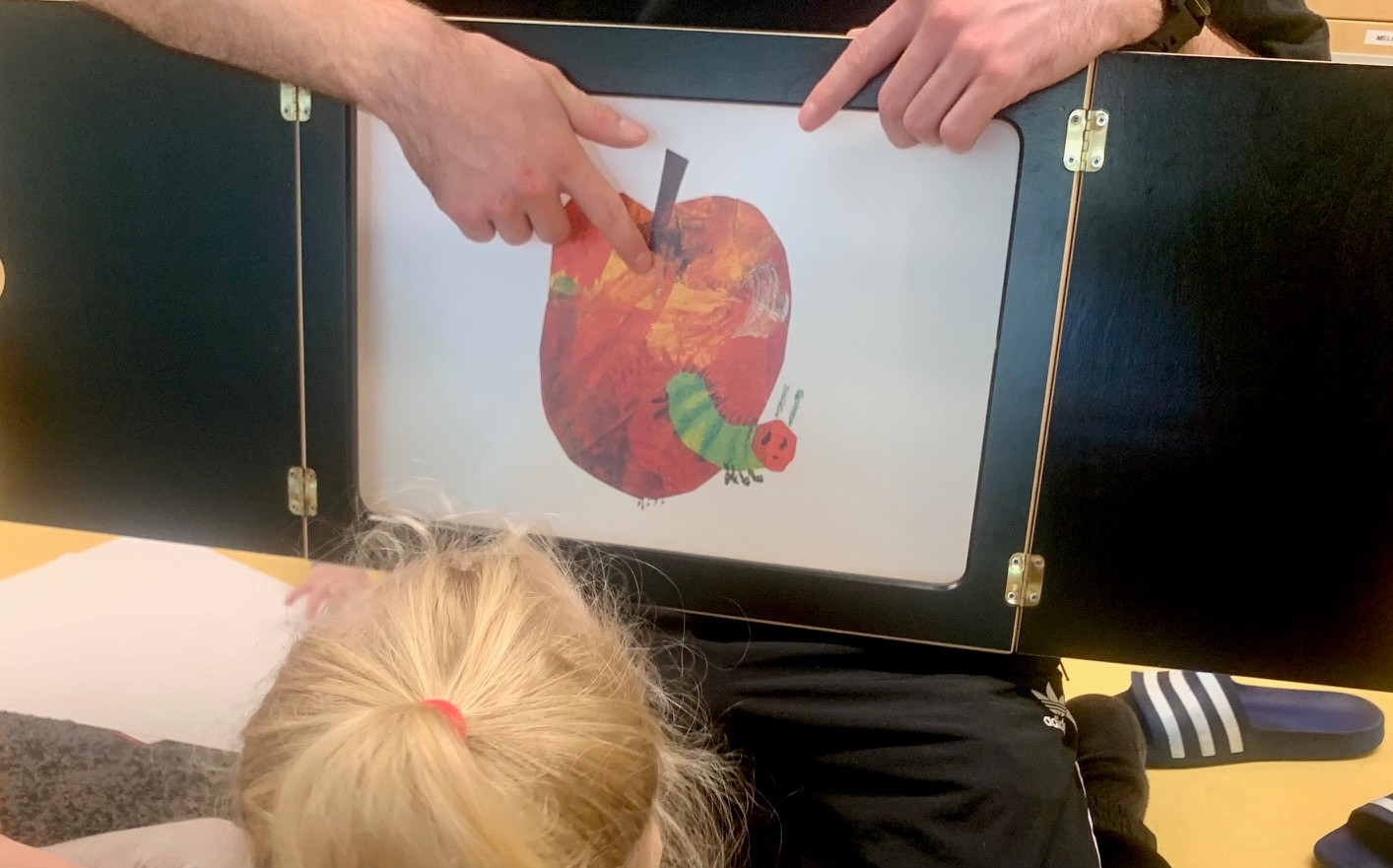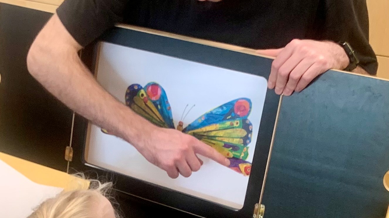 Nicht nur sprachlich lernen die Kinder neue Worte, auch die Farben, Mengen und sogar die Entstehung des Schmetterlings können die Kinder wissbegierig aufnehmen.