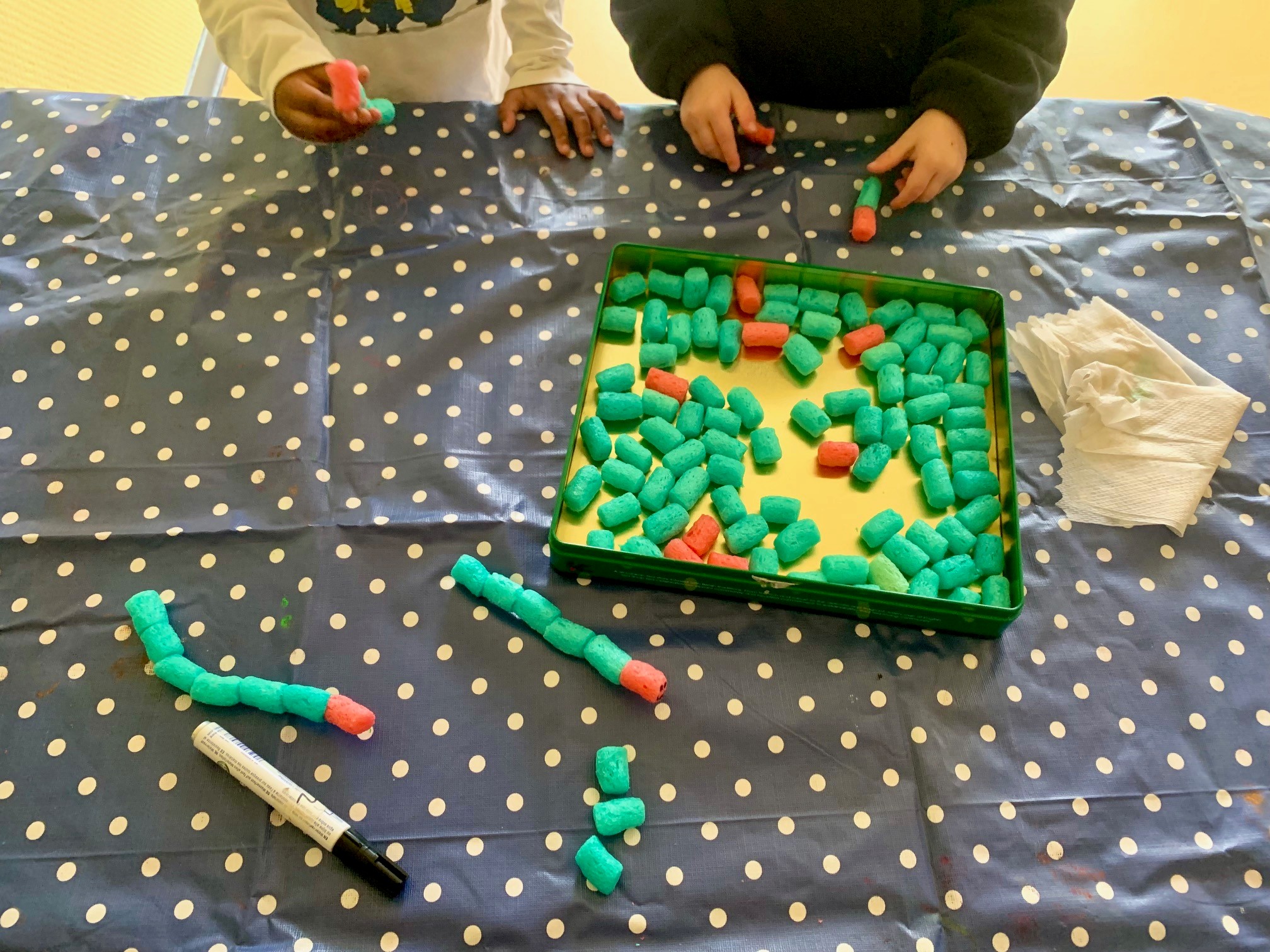 Anschließend hatten die Kinder die Möglichkeit, sich selber eine kleine Raupe aus Playmais zu gestalten.