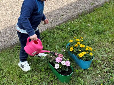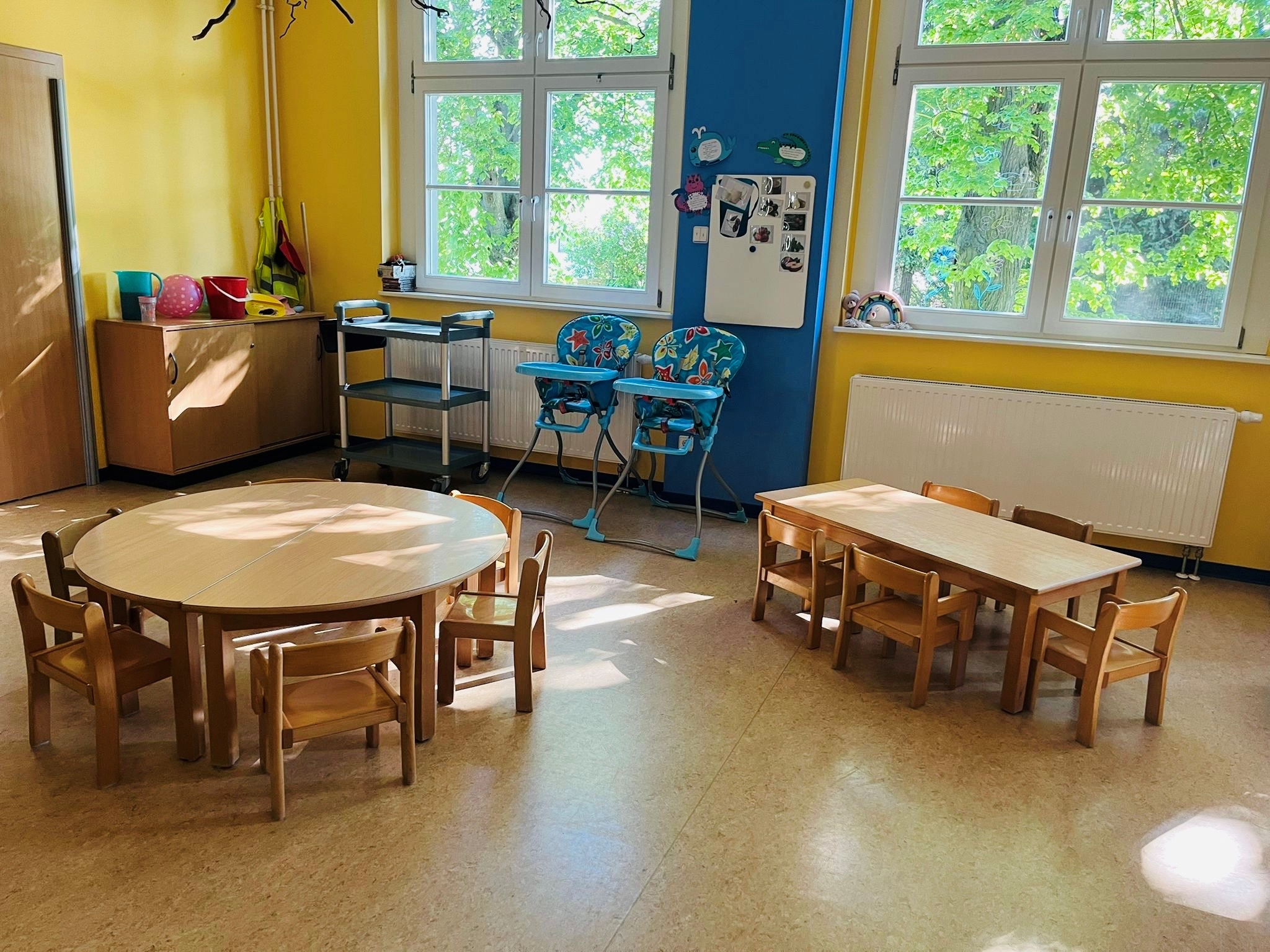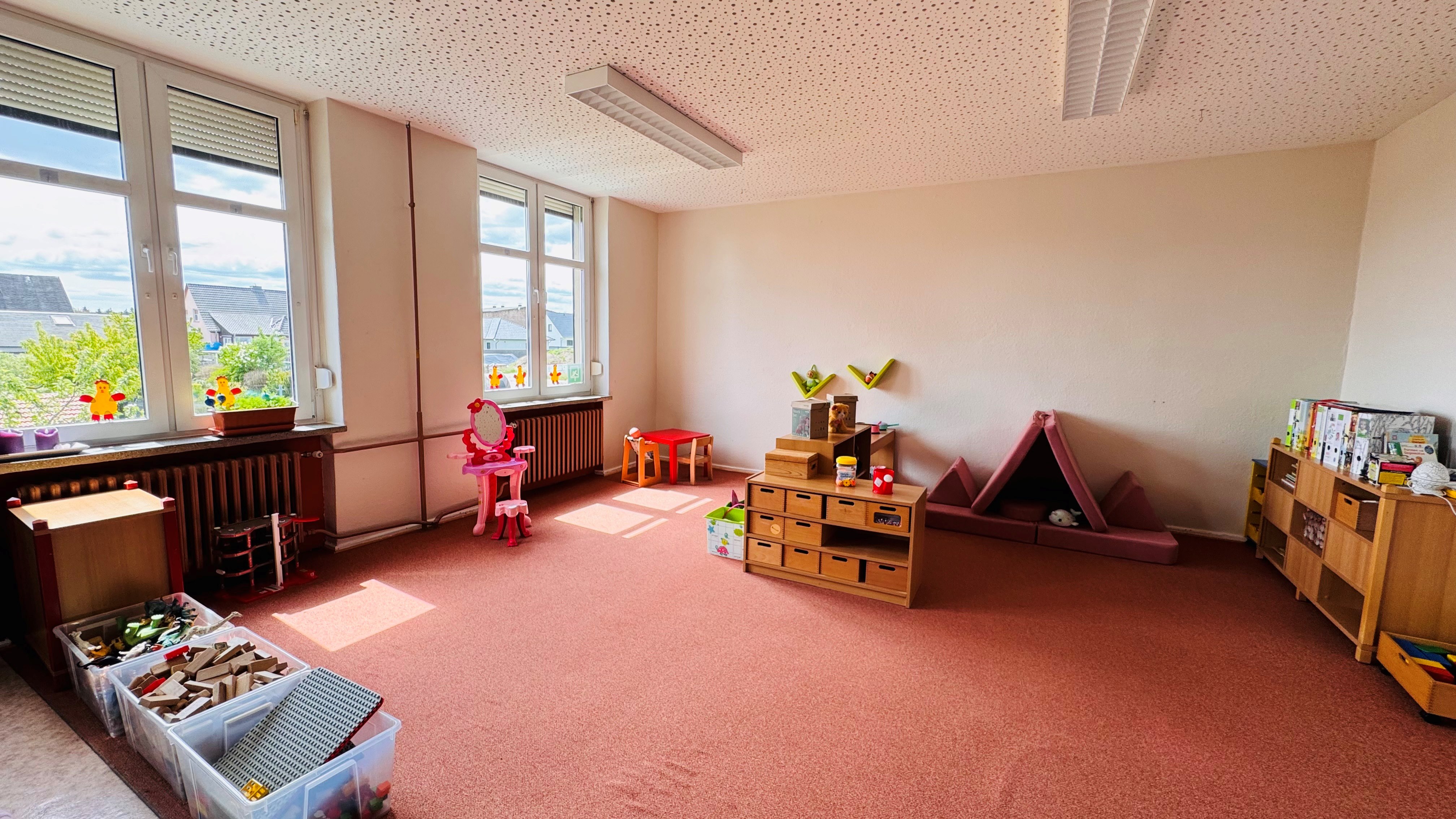 Wir schaffen deshalb mit der Gestaltung unserer Räume und der freien Zugänglichkeit verschiedenartiger Materialien ausreichend Anregungen, das Leben selbst zu erforschen und zu begreifen.